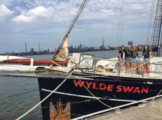 Op 16 augustus ben ik naar de open dag van de Wylde Swan geweest! Het was heel leuk om het schip van binnen te bekijken, en het is heel apart om te beseffen dat ik daar 5 weken ga wonen! De Wylde Swan is groot, totdat je bedenkt dat je er met 45 mensen op gaat wonen ;-). Op de foto zie je ook de 'bunks', de bedden. De bunks zitten in de 'main hold'. Daar maak je je huiswerk, eet je de maaltijden, doe je 's avonds spelletjes en slaap je. Aangezien de reis helemaal vol geboekt is moeten er ook een paar trainees in hangmatten slapen! Verder heb je nog een keuken, een machinekamer, een paar douches en toiletten, de cabines van de crew en de stuurhut aan boord. Ook heb ik op de open dag een paar andere trainees ontmoet die ook met reis 4 meegaan! Het was nu al heel gezellig dus dat moet aan boord helemaal goed komen😉 Ik heb nu nog meer zin in deze reis!